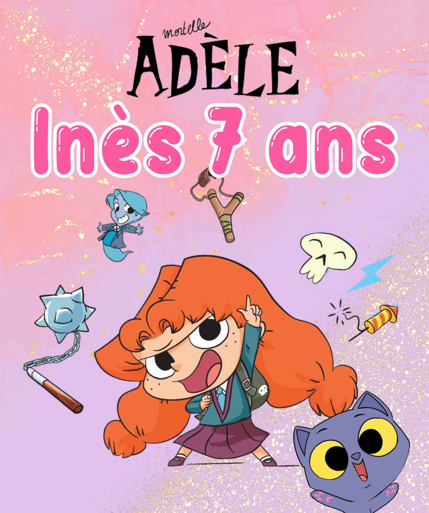 Décoration d'anniversaire personnalisée sur le thème Mortelle Adèle